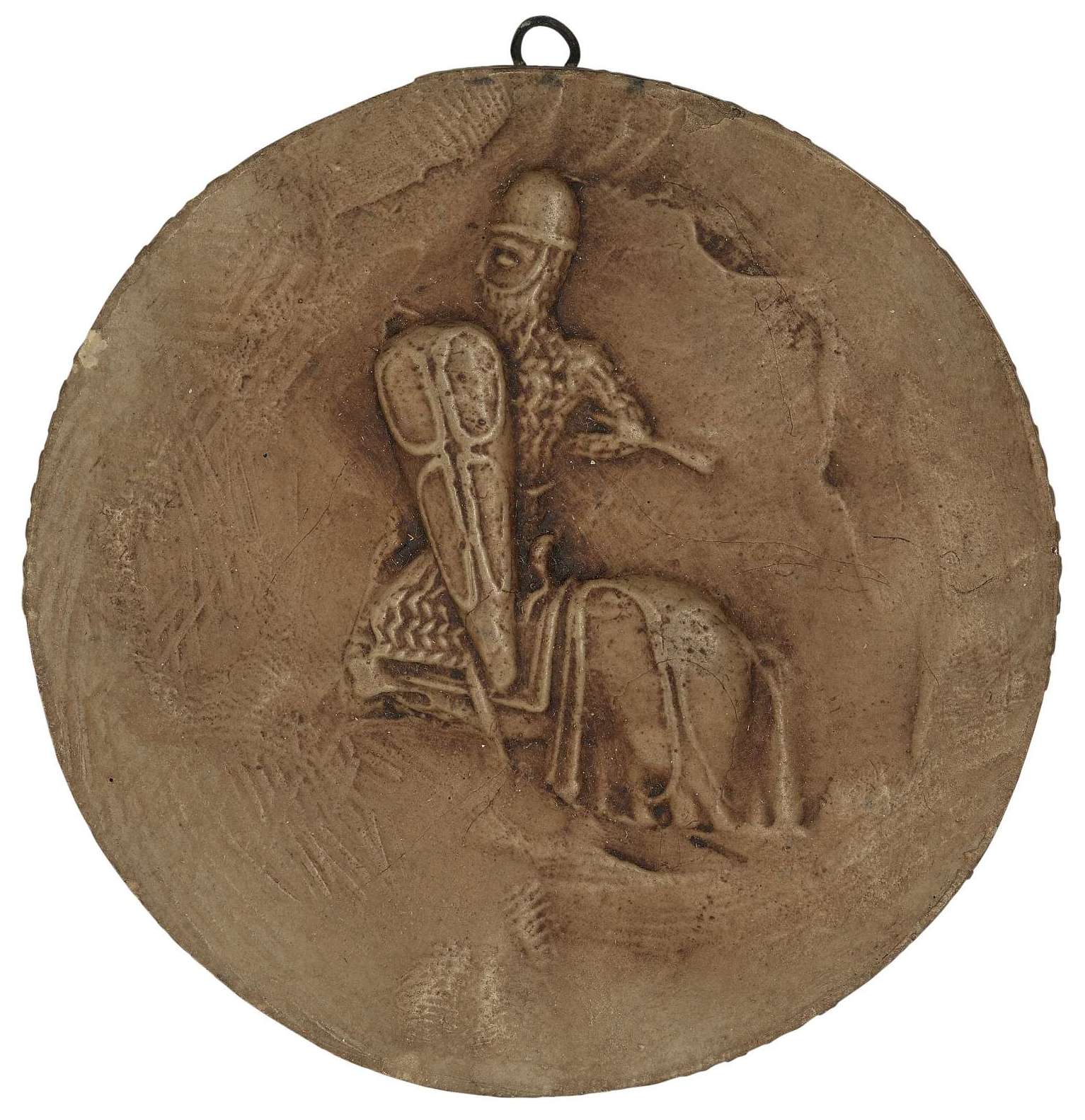 Comparativement, le n°594 montre un archaïsme prononcé avec les écus en amandes, les casques à nasal et au sommet pointu, le haubert à manches courtes, éléments qui se retrouvent dans les sceaux du dernier quart du 12ème siècle et jusqu’aux toutes premières années du 13ème siècle.