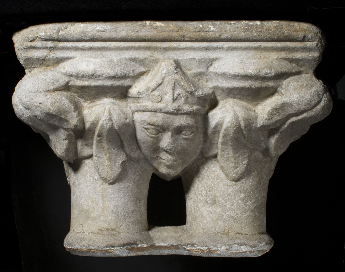 Dus capitèths guaireben similars que son conservades en Metropolitan Museum de New-York – Cloister museum. Era sua origina n’ei pas coneguda ath juste mès eras semblanças ja son talas que les pensam plan probablament sortits deth madeish convent de Sent Gaudenç. Un deths capitèths que presenta eth cap mitrat d’un avèsque o d’un abat sus era auta fàcia, qu’assolida era pista d’un prelat sortit deth linhatge, qu’auria podut aparténguer ath òrde deths Dominicans31.