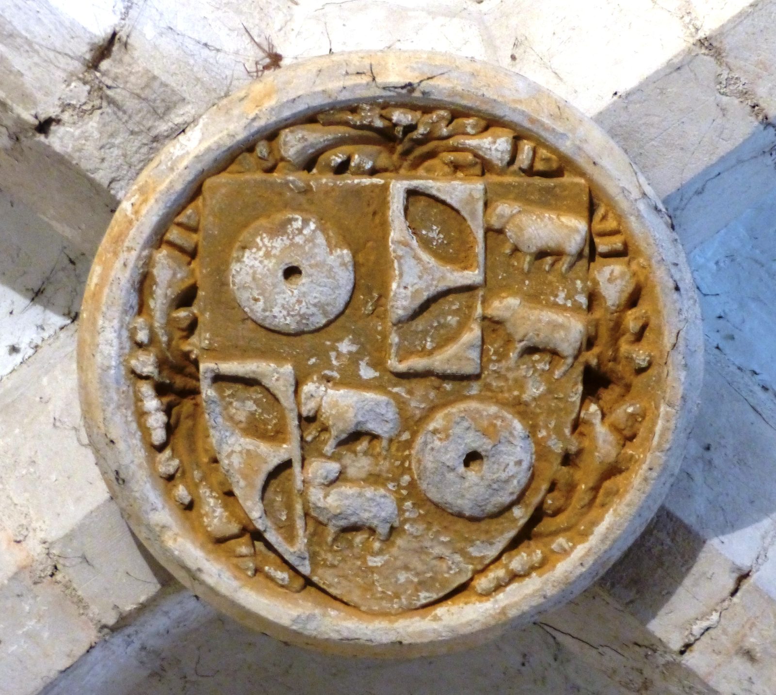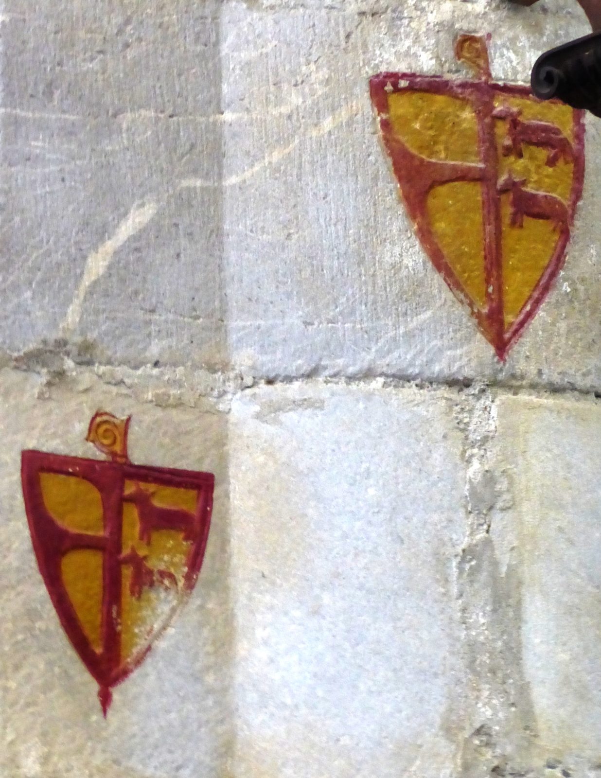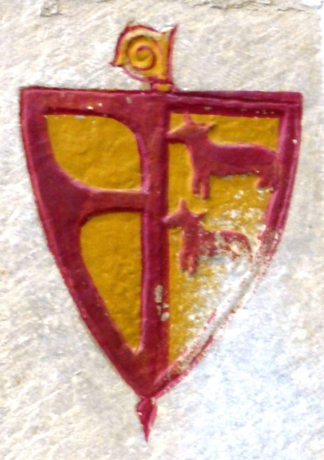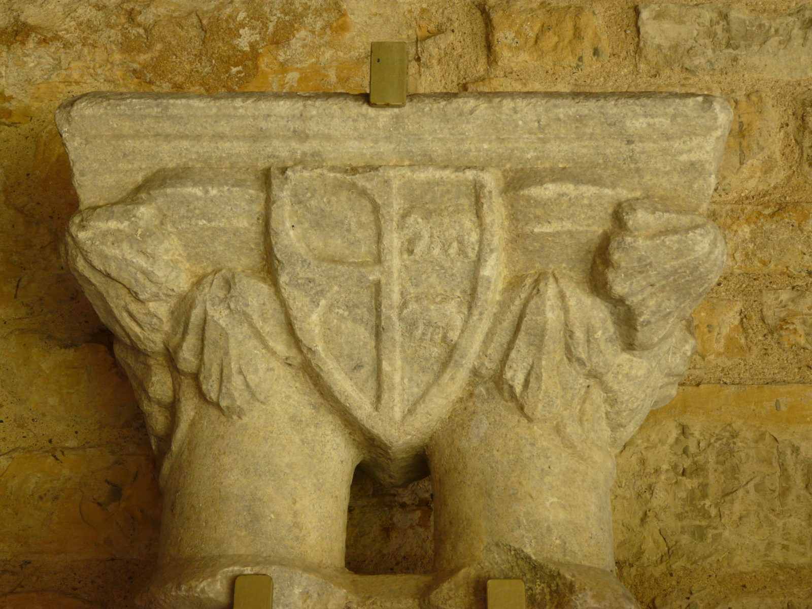 Quauquas honts que pretenguen qu’eras armas deths senhors de Coarrasa qu’èran d’aur a duas oelhas passantas de sinòple »19. Quauques autors que las arreconeguèren enas bèstias associadas en miei-partit aras armas de Comenge, que figuran ena clau de vòuta d’Aspèth. Pr’aquò, ara nòsta coneishença, cap de hont autentica non acredita eth usatge de oelhas enas armas deth linhatge. Ath contrari, eth sagèth que’s servic Bernat, frair ainat de Raimond-Arnaud e senhor de Coarrasa entre 1409 e 1426, mòstra plan un aneret, que Joseph Roman interpretèc coma un sarralh20. Atau, que proposam d’identificar clarament en aqueth escut eras vacas d’Aspèth, qu’eth escultor aurà representat d’ua faiçon mauagida.