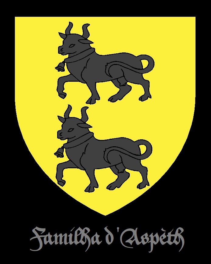 Arnaud-Raimond, eth ainat, qu’èra senhor d’Aspèth e que’s moric après 1257. Eth musèu Paul Dupuy de Tolosa que sauva peras suas arresèrvas era mèrca deth son sagèth equèstre que mòstra un escut miei-partit de Comenge e de duas vacas passantas. Ena segona mentat deth sègle 19, era matriça d’aqueth sagèth qu’èra aparentament conservada en ostau dera comuna d’Aspèth, abans de desaparéisher. Era mèrca de cera arroja que’n demòra qu’ei mencionada ara fin deth sègle 19 peth istorian locau F. Périssé 8. Eth analisi eraldic que propòsa aqueth autor ara fin deth son article qu’ei malerosament erronèa e que va participar a confóner eras vacas deths prumèrs senhors d’Aspèth dambe eras deths vescòmtes de Biarn. Aquera error que serà arrepresa per J. Roman e passada en usatge, maugrat era preséncia deras armas autenticas d’Aspèth « d’aur a duas vacas passantas de sable » per mantuns armoriaus medievaus, coma ac vam véder mès lonh.
