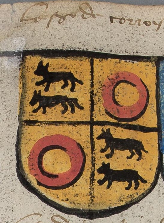 Aqueth escartairat qu’ei blasonat en armoriau de Jehan Le Feron, composat en 152023.