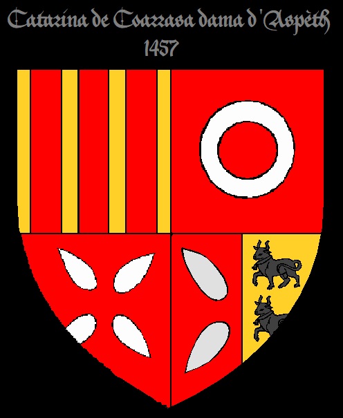 Eth sagèth dera darrèra dama d’Aspèth qu’ei conegut per ua mèrca datada de 145730 que mòstra ua particion encara mès elaborada deth escut dambe era preséncia deras armas deth son praube òme Matèu de Foish associadas aras suas en un partit de dus copats.