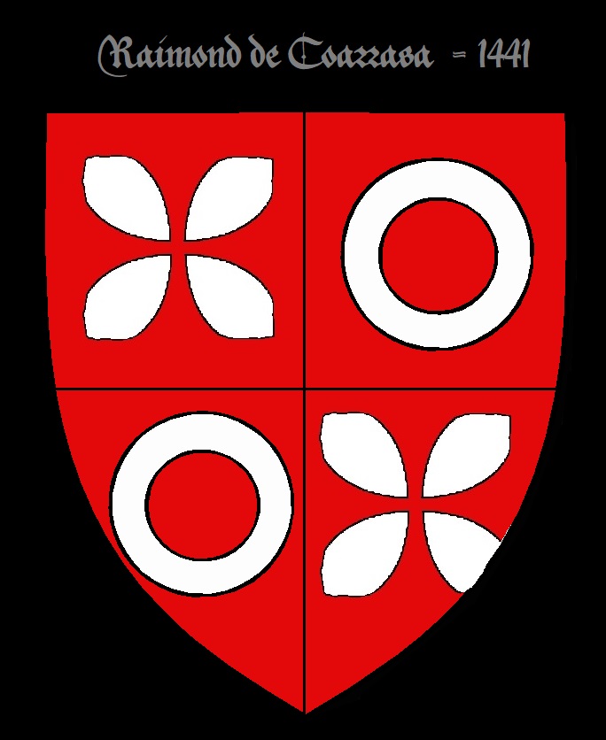 Ua auta version deras armas d’aligança deths Coarrasa d’Aspèth qu’apareish en sagèth de Raimond de Coarrasa, junt a un acte de 144128. Aquiu, era causida que hoc hèta d’escartairar eth anèth de Coarrasa dambe eras armas plias de Comenge, ara exclusion deras vacas d’Aspèth. Aqueth Raimond, contemporanèu de Raimond Arnaud II, n’ei pas clarament posicionat ena genealogia pro incomplèta deth linhatge deths senhors d’Aspèth e que mos podem pensar qu’aqueth cambiament en escartairat poiria èster comprés coma ua bresadura.